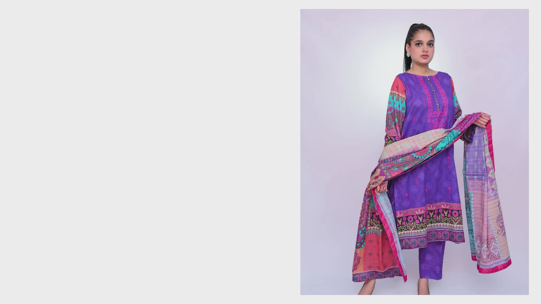 Mulberry Charm 3-Piece Lawn Suit Unstitched (A-122)