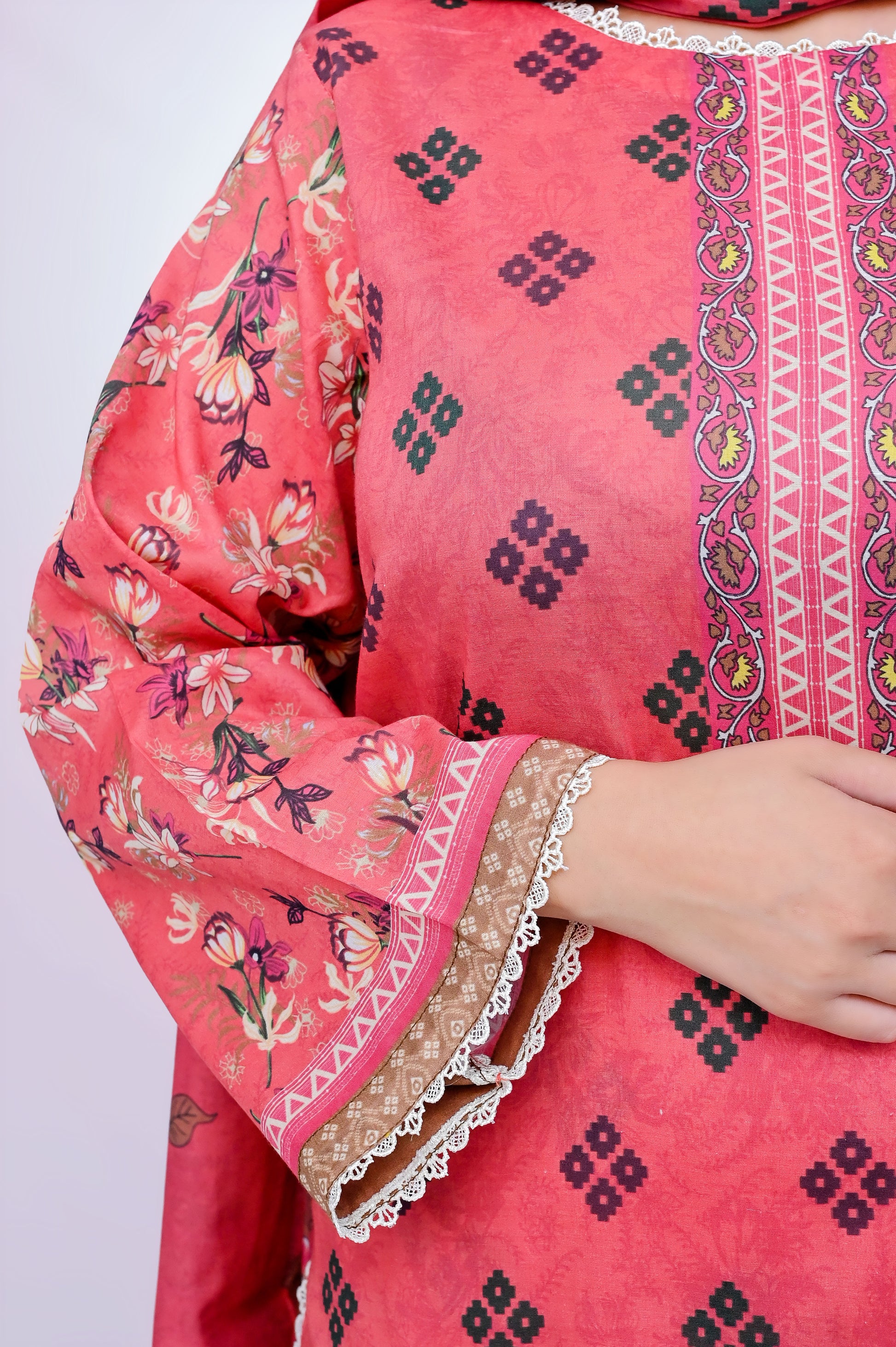 Retro 3-Piece Lawn Suit Unstitched (A-113)